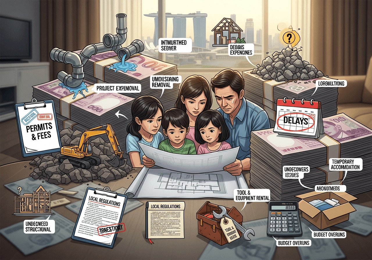 These hidden costs appear even more frequently in older neighbourhoods like Telok Kurau, Opera Estate, Serangoon Gardens, Seletar Hills, Clementi Park, and pockets of Bukit Timah, where infrastructure varies widely.