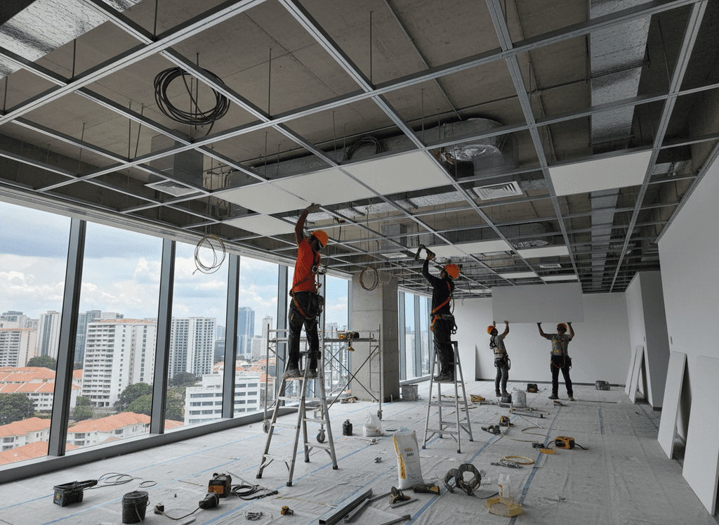 Custom ceiling installations for aesthetics, lighting integration, and sound control.