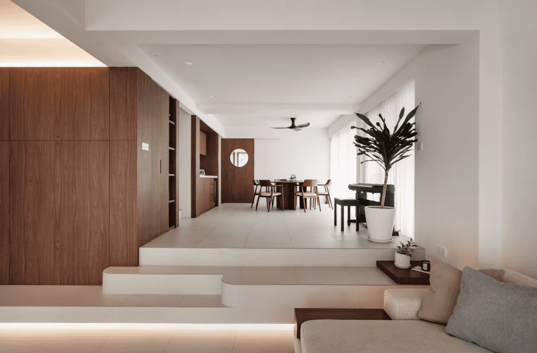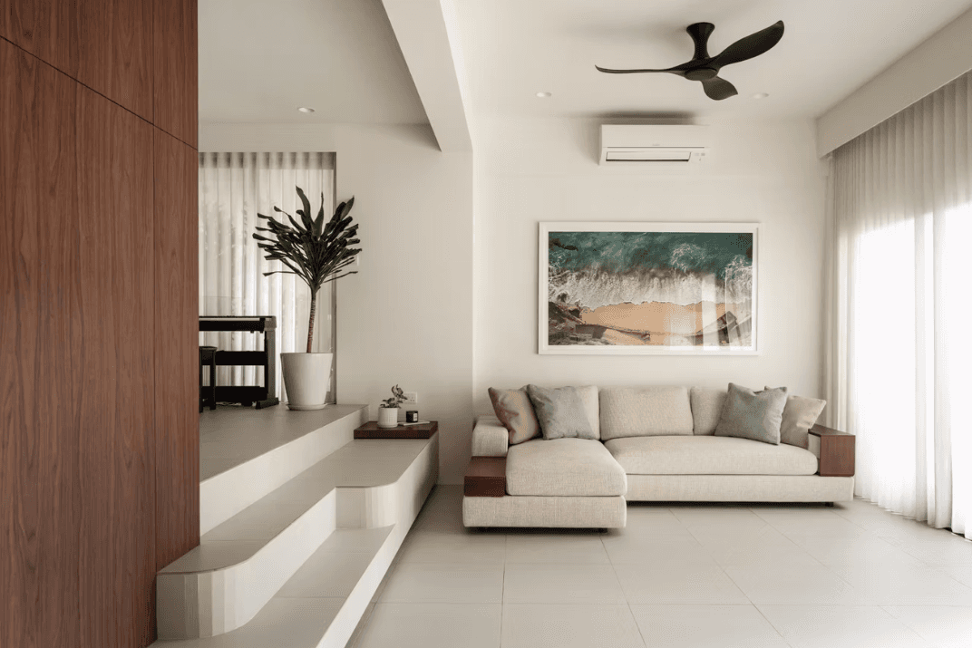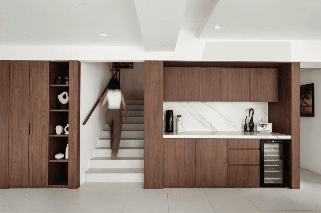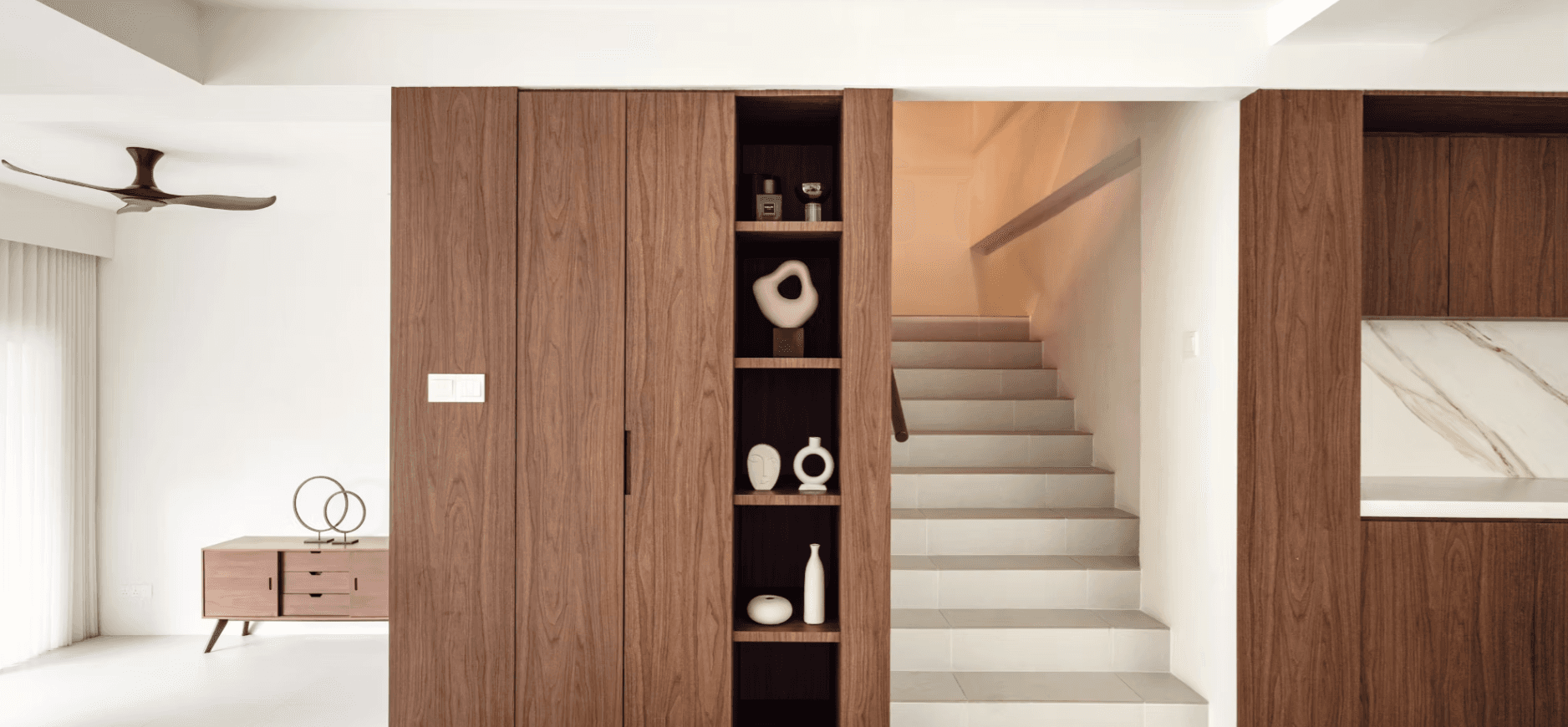 Refreshed and renewed, the space now boasts a timeless colour palette of soft cream hues and deep walnut brown. A column in the front porch bears the handprints of the current owners, both big and small. Some signs of the past were retained, like the exterior floor tiles to the flowering frangipani tree planted by the late grandmother that will now watch the next generation blossom as it did for members of the earlier generation.