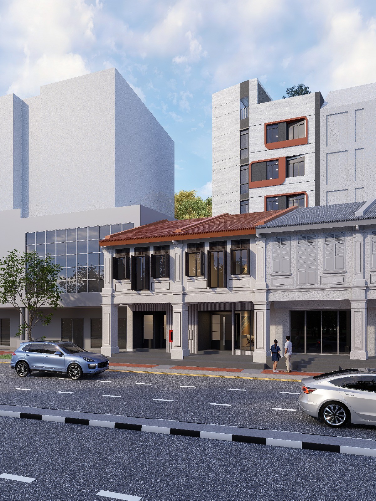 From a design and construction standpoint, the project creates a meaningful dialogue between the historic identity of the conserved shophouse and the contemporary expression of the rear extension. The front elevation continues to contribute to the familiar Balestier Road character, while the rear block expresses a more modern language that supports the new programme. This balance between preservation and progress is what gives the development its distinct value.