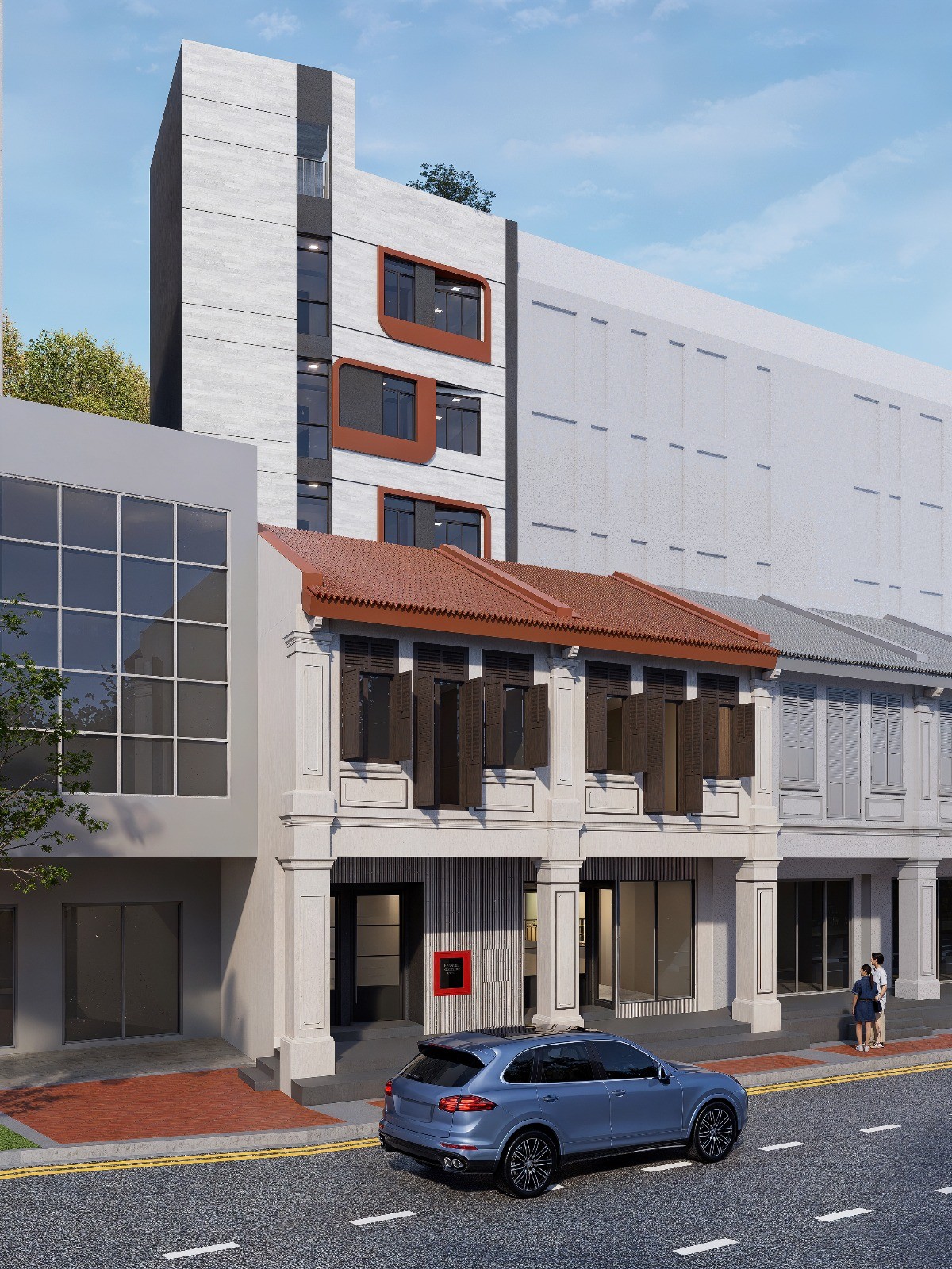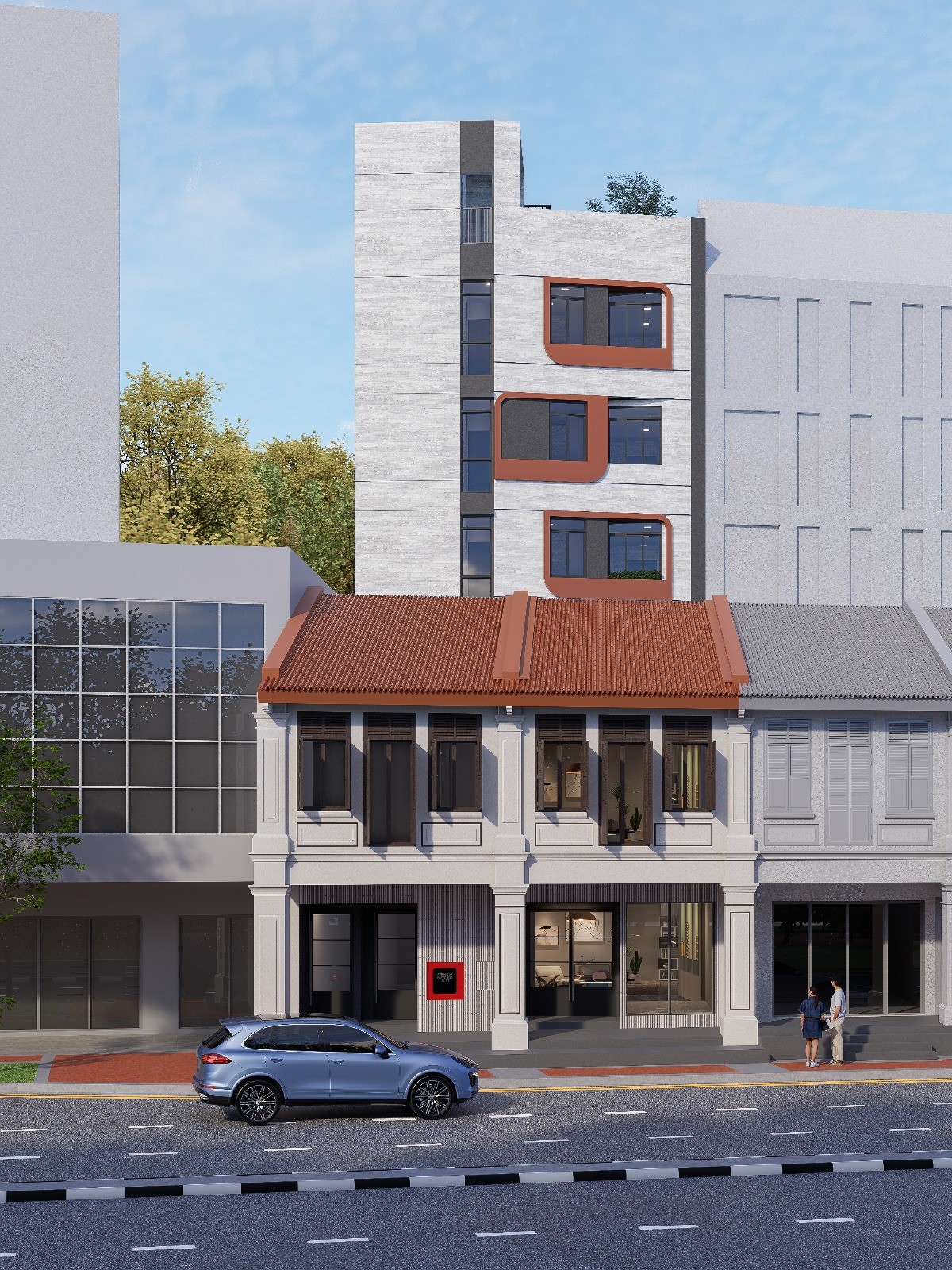 Thoughtfully crafted spaces, seamlessly pairing a retained heritage shophouse with a contemporary 6-storey rear extension housing retail and 7 serviced apartment units.