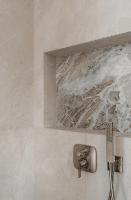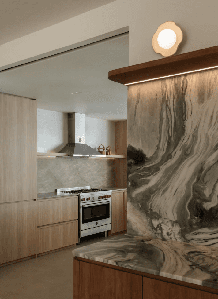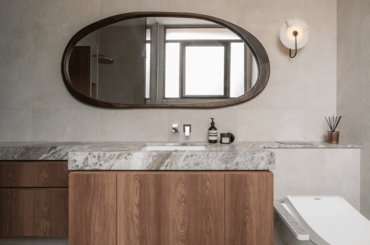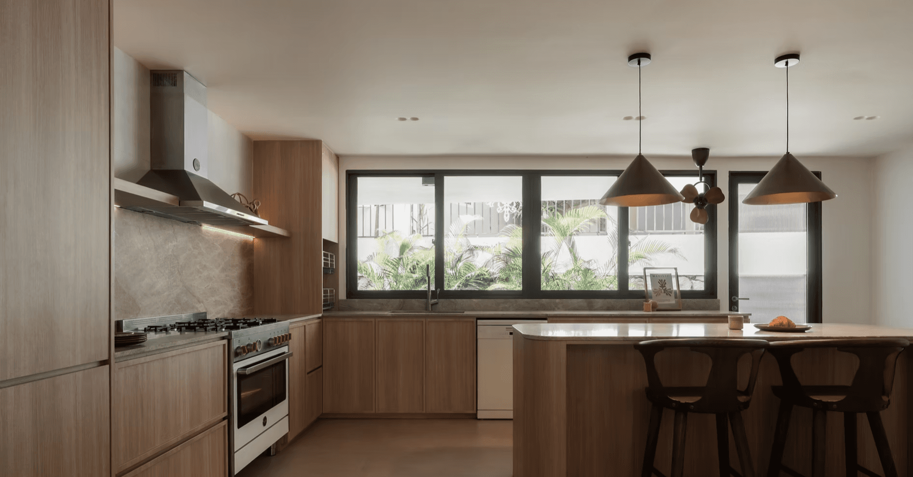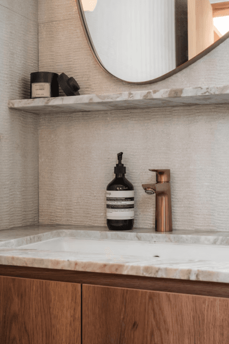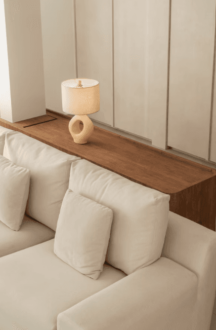 The material and colour palette were largely borrowed from the family’s happy memories of Morocco, a place filled with nature, the sea, and the sand. With a focus on the latter, the home is encased in earthy light beige and natural warm wood with pops of terracotta and the occasional use of glass blocks that serve as a formal invitation to the sun to let its light in.