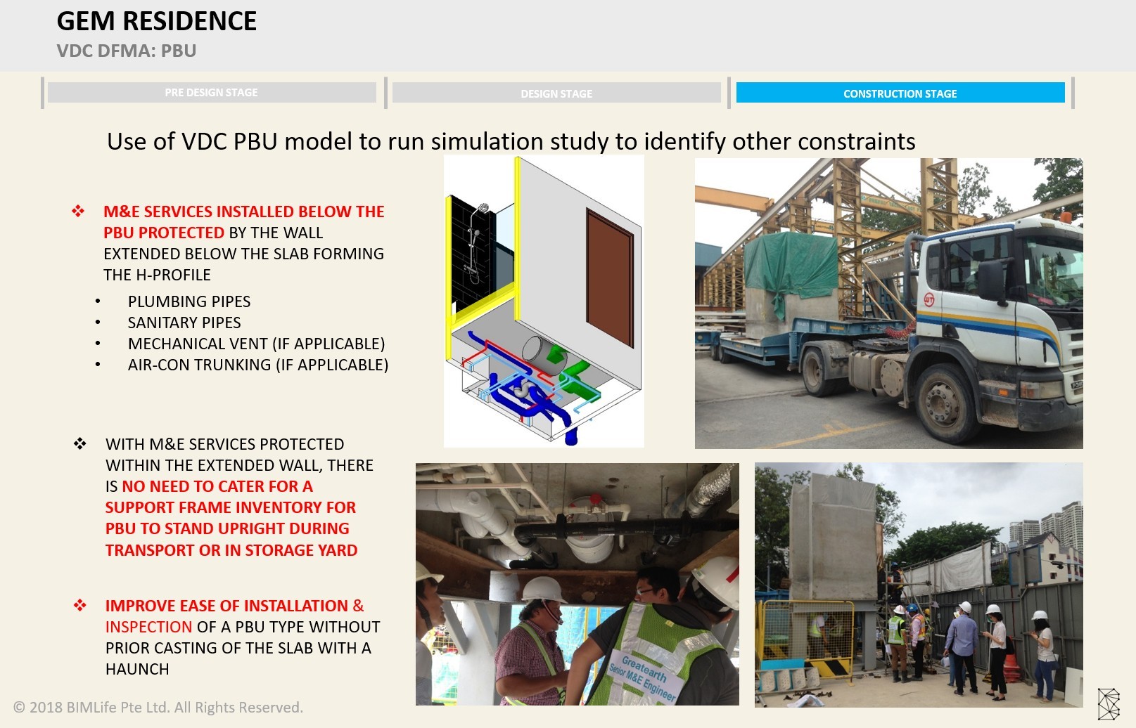 At Gem Residences @ Toa Payoh, the project involved the application of VDC, DFMA and Prefabricated Bathroom Unit (PBU) methodologies to improve coordination, constructability, installation efficiency, and site execution planning.