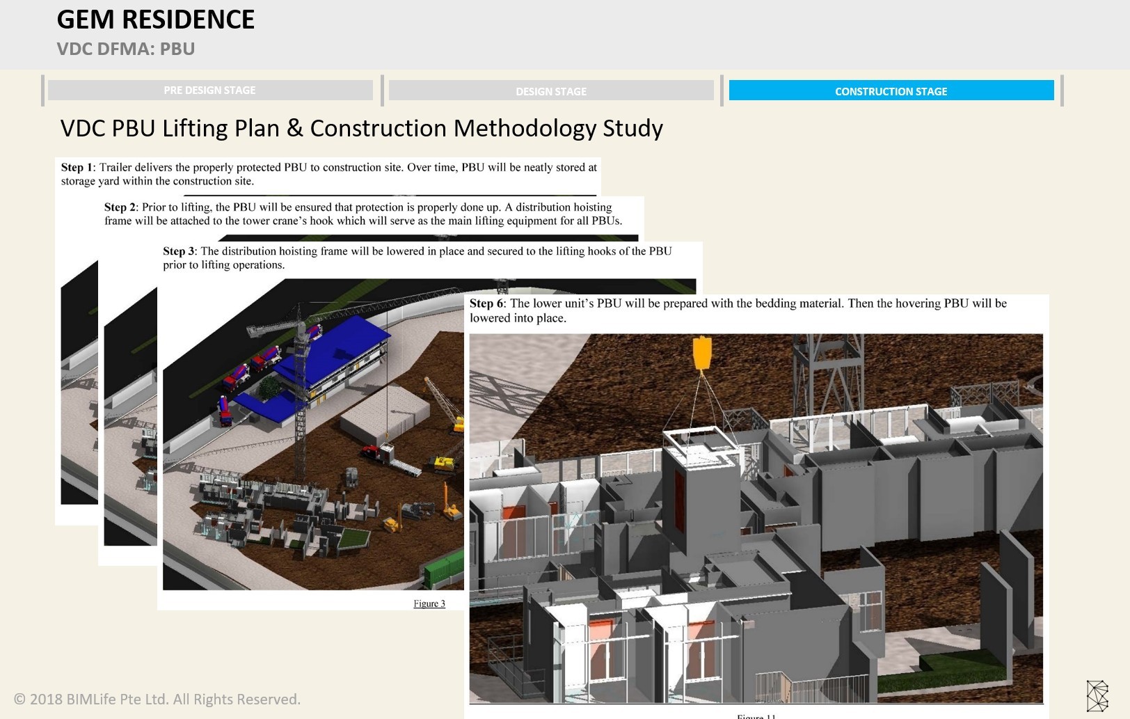 The project also included VDC-based lifting plan studies and construction methodology simulations for the PBU installation process. These studies helped plan trailer delivery, storage yard considerations, hoisting frame attachment, lifting sequence, and final placement of the prefabricated units. By using digital simulation to study construction methodology in advance, the project team was better able to improve site planning, reduce uncertainty, and support safer and more controlled execution.